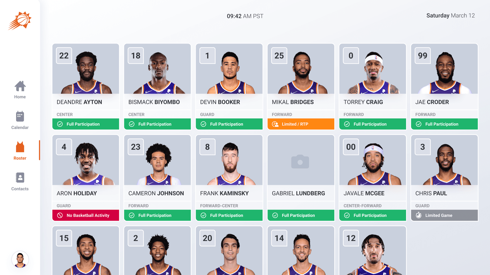 A roster management system provided a clear overview of team personnel, player availability, and role assignments.